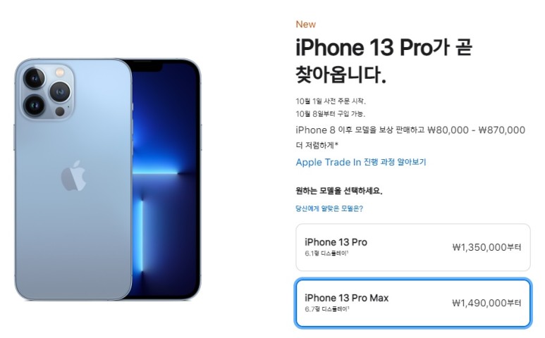 아이폰13 국내 출시일은 10월 8일입니다. 사전예약은 10월 1일부터 시작할 예정입니다.