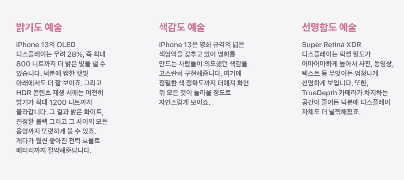 또한 Super Retina XDR이 들어갔는데요. 이를 통해 트루 블랙톤 표현력이 높아졌다고 합니다.